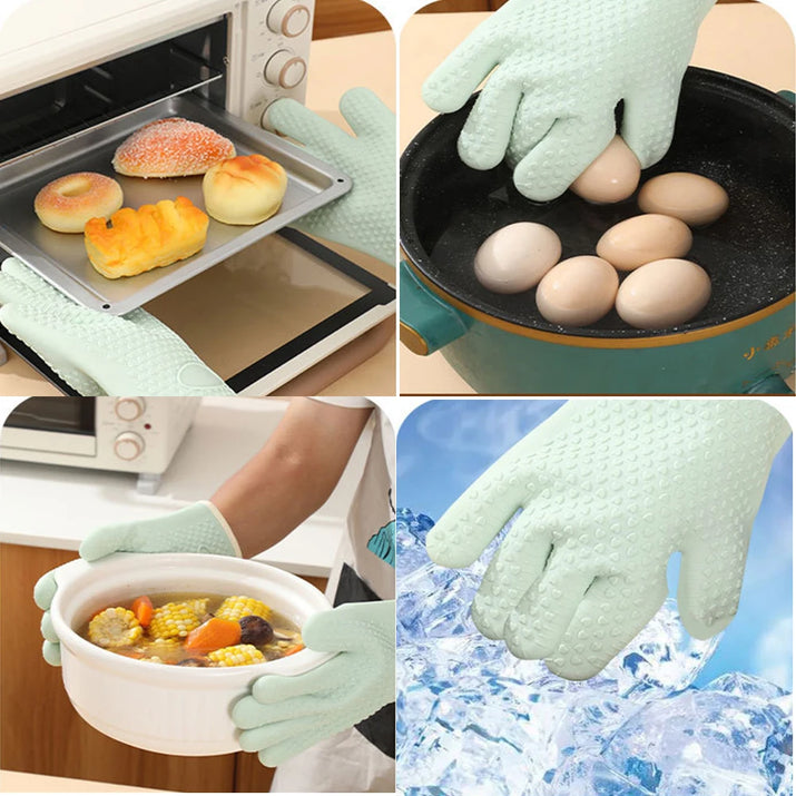 Answer 2: Yes, these gloves feature a waterproof design, keeping your hands dry during spills. They are versatile enough for various tasks, including grilling, baking, and even cleaning, making them an essential tool for both indoor and outdoor cooking.